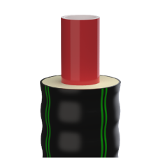 FibreFlex / FibreFlex Pro press fittings have an additional polymer crimp sleeve between the sliding sleeve and the service pipe. As a result, the support bushing can be inserted directly into the pipe ends during installation without widening. Up to size 110, standard pressing tools such as for PE-Xa pipes (SDR11) can be used. The RK Infra pressing tool is available for larger dimensions. The pressing point is insulated with joint system.