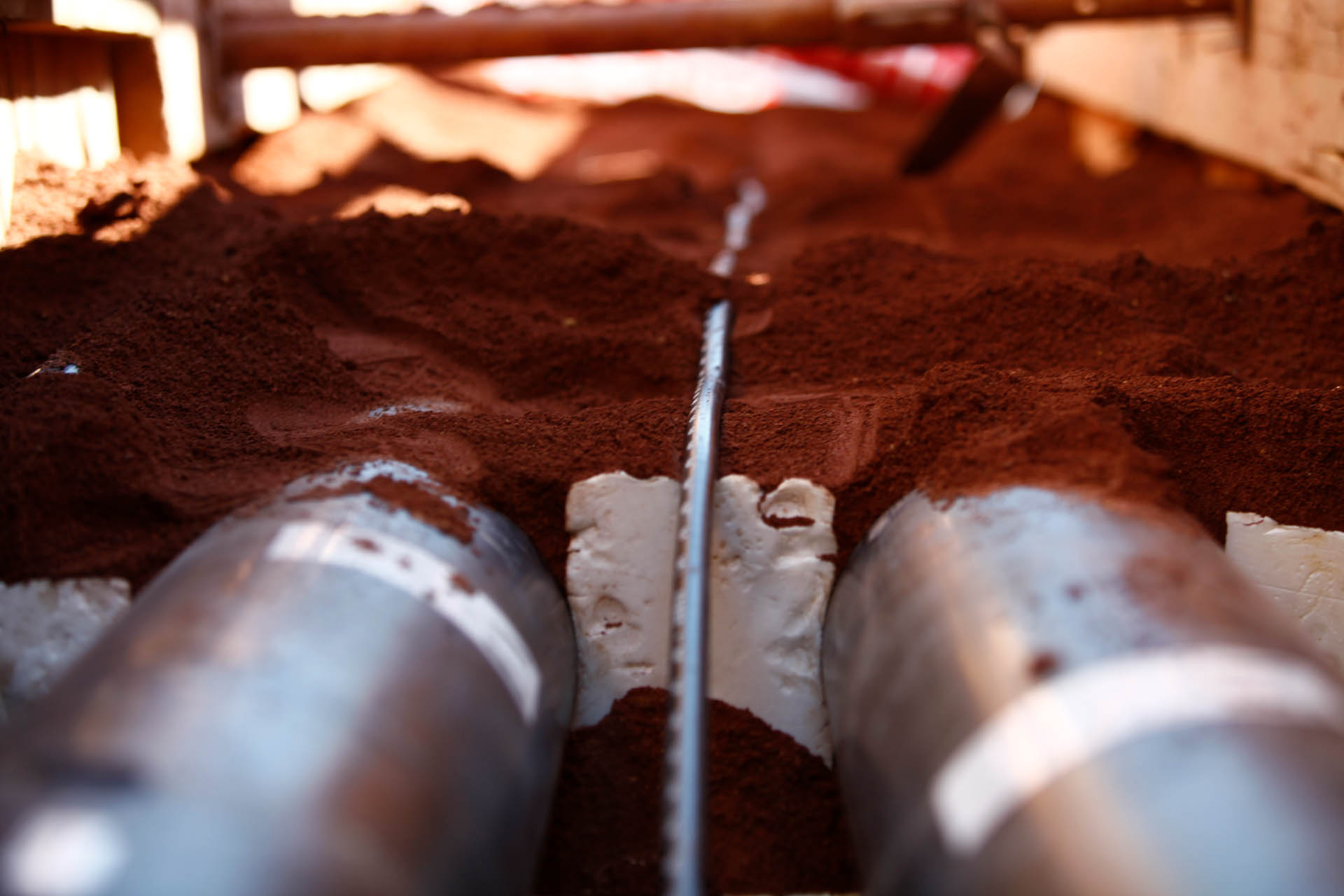 District heating pipes are used buried for heating networks up to 130 ° C hot water temperature. In the trench they are laid in a sand bed, resulting in a temperature gradient from the pipe to the edge of the chute as a result of the heat loss. With the innovative thermal sand, the heat losses compared to conventional cable sand can be significantly reduced.